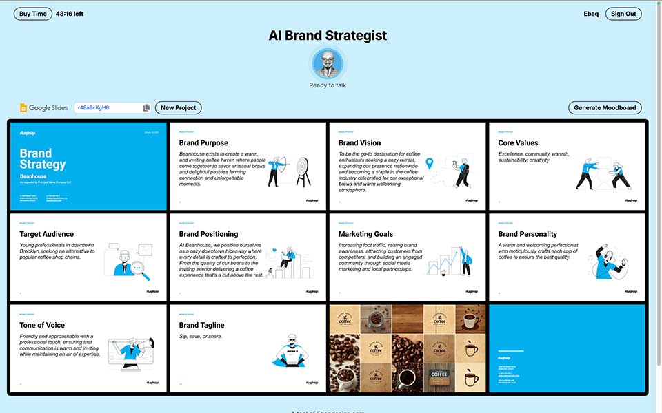 And at the end, you can even generate a mood board. Essentially, in just five to 10 minutes, you can generate the whole brand strategy.
