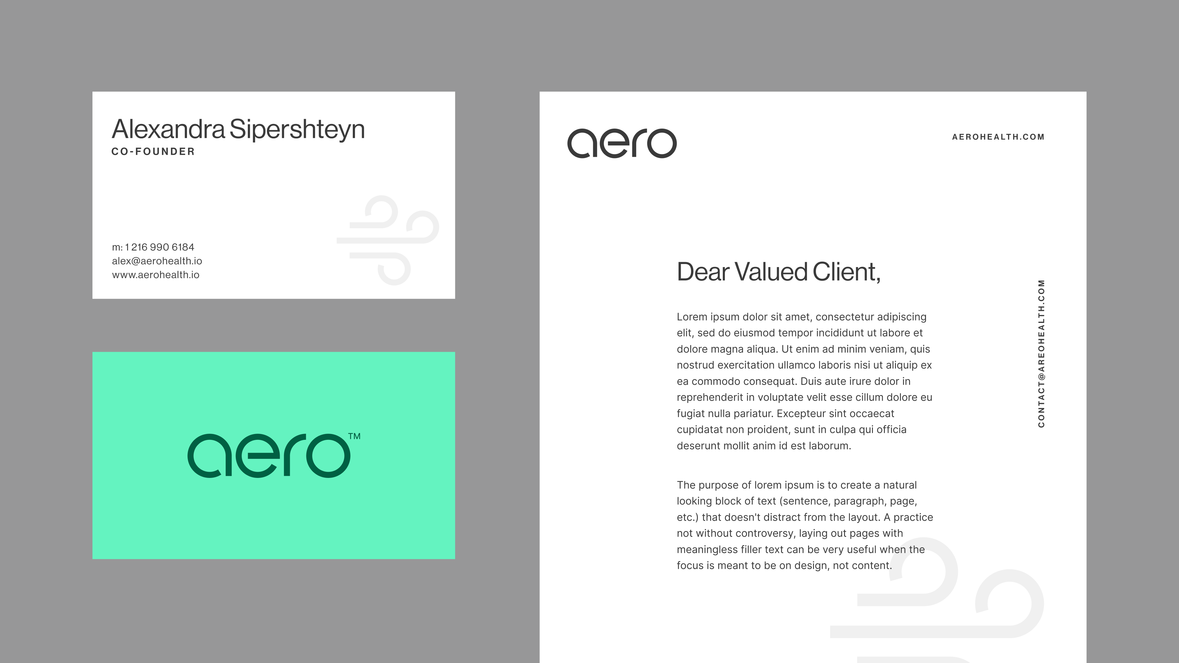 Aero is a breath-analysis company focused on delivering precise, non-invasive health insights through advanced sensor technology. The identity was designed to feel clean, clinical, and trustworthy—reflecting the brand’s scientific foundation and data-driven approach. A custom lowercase wordmark balances technical precision with approachability, using refined geometry and subtle optical adjustments for clarity at any scale. The green color palette was intentionally chosen to evoke a lab-grade, medical environment, reinforcing accuracy, reliability, and calm confidence. The result is a modern, credible identity that positions Aero at the intersection of healthcare, technology, and innovation.